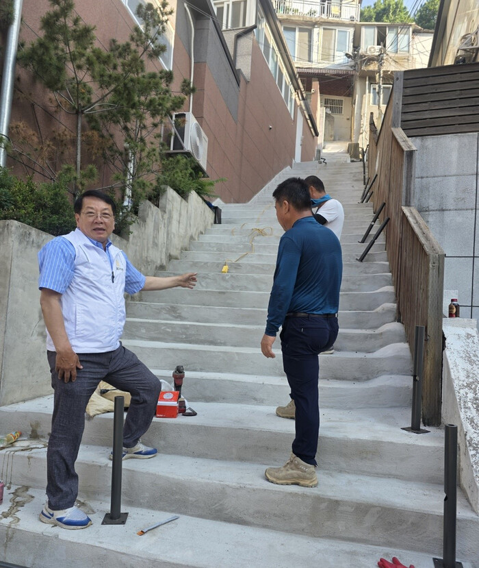 [시민일보 = 이대우 기자] 김종보 서울 종로구의회 의원이 최근 숭인동 72-149 일대에서 진행 중인 노후계단 정비 사업 현장을 찾아 공사 진행 상황을 점검하고 관계자들을 격려했다.