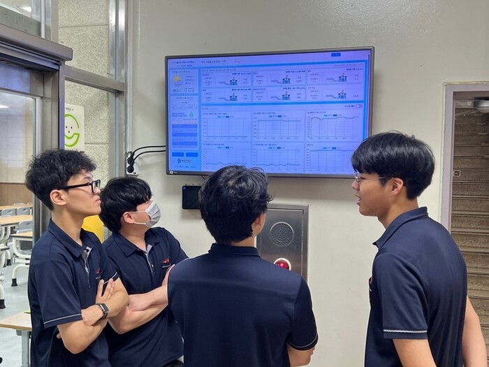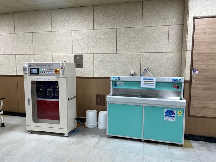 | ▲ 서울시 용산철도고등학교 급식실에 ‘AI 스마트 수돗물 수질 측정 시스템’이 설치되어 있다. |