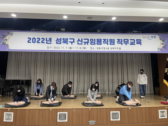 [시민일보 = 홍덕표 기자] 서울 성북구(구청장 이승로)가 이달 7~8일 신규임용 공무원 80여명을 대상으로 심폐소생술(CPR) 교육을 실시했다.