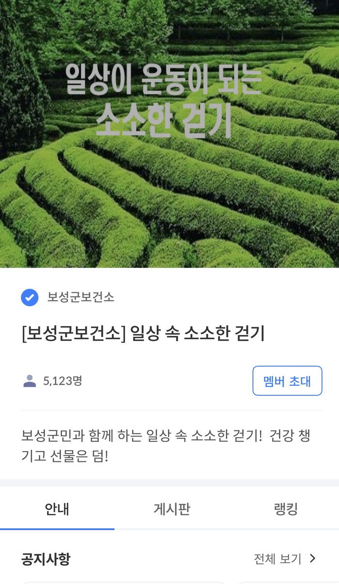 ‘소소한 걷기 챌린지’는 일상생활 속 걷기 실천을 정착시켜 군민 건강 증진을 도모하고, 모바일을 활용해 보건 정보를 효과적으로 안내·홍보하기 위해 2021년부터 추진되고 있는 건강 증진 사업이다.