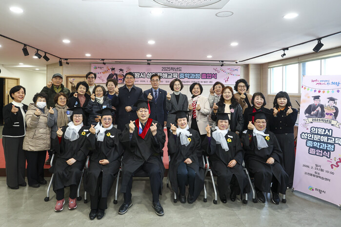 [의왕=송윤근 기자] 경기 의왕시가 지난 23일 고천동평생학습센터에서 ‘2025학년도 성인문해교육 중학과정 제2회 졸업식’을 개최하며, 배움의 시기를 놓쳤던 노인들에게 졸업장을 전달했다고 24일 밝혔다.