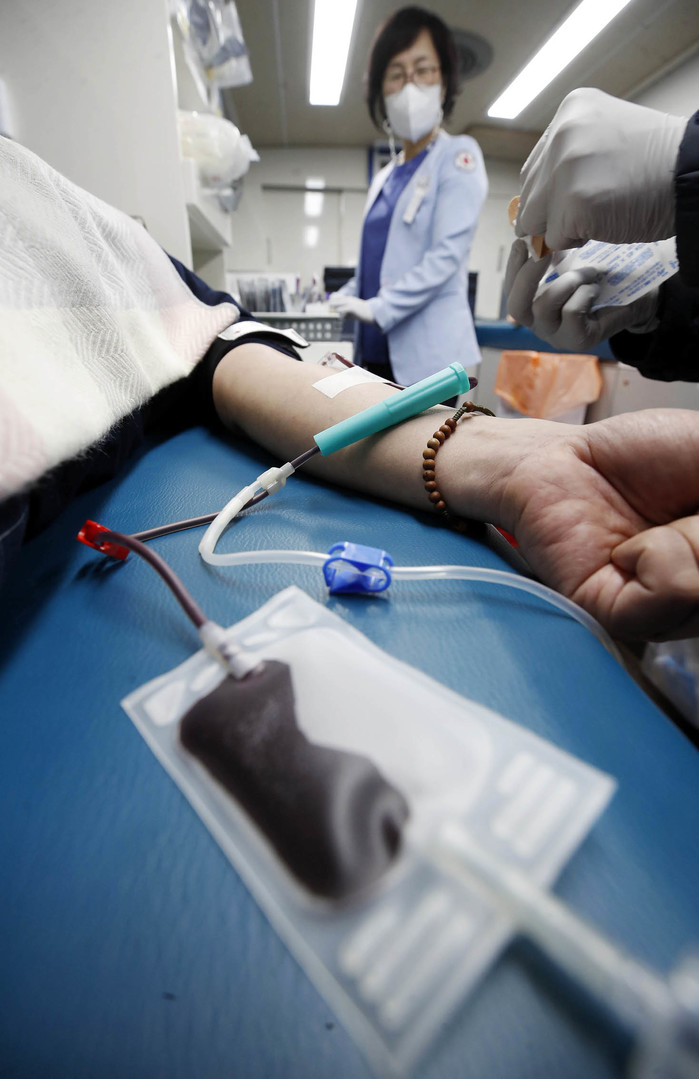 2일 오전 광주 북구청 광장에서 코로나19 장기화로 인한 혈액 부족 사태 해소를 돕기 위해 광주 북구청 공무원들이 헌혈에 동참하고 있다.