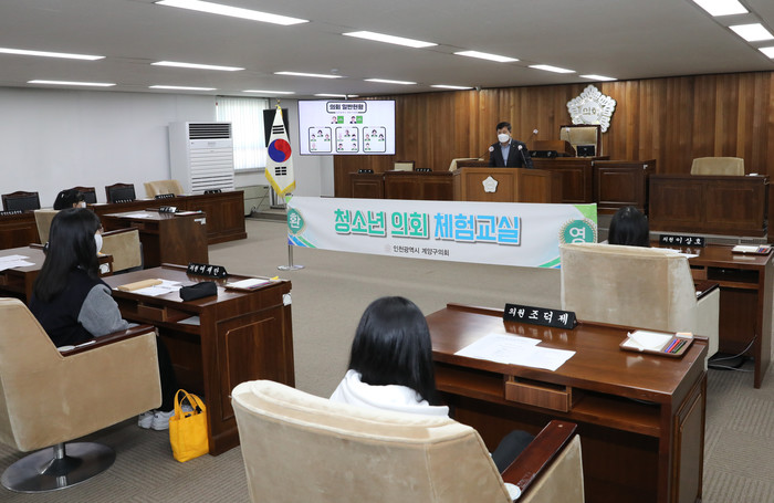 [인천=문찬식 기자] 인천 계양구의회가 최근 인천예일고등학교 학생 10명을 대상으로 ‘청소년의회 체험 프로그램’을 운영했다.