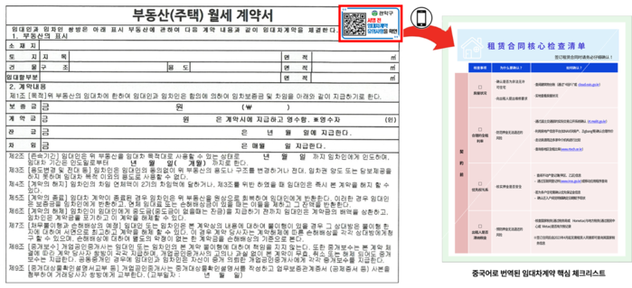 이에 구는 계약서 상단의 QR코드를 인식하면 확인할 수 있는 '임대차계약 핵심 체크리스트'를 중국어, 베트남어, 몽골어, 영어, 일본어 등으로 번역해 제공한다.