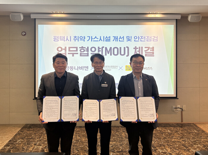 [평택=오왕석 기자] 평택시사회복지협의회 평택행복나눔본부(회장 최승규)는 지난 5일 한국가스안전공사 경기광역본부, ㈜경동나비엔과 함께 ‘평택시 취약 가스시설 개선 및 안전점검’ 3자 업무협약을 체결했다.