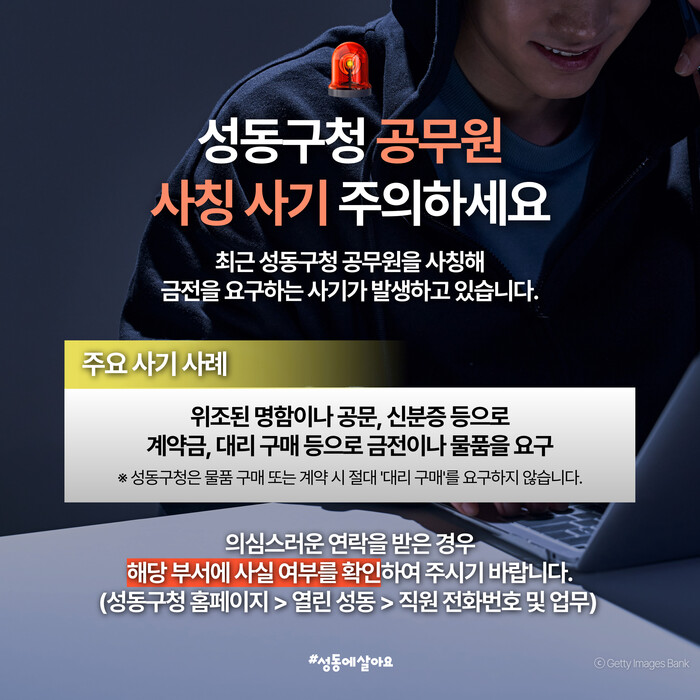 | ▲ 공무원 사칭 사기 주의 성동구청 SNS 홍보 이미지. (사진=성동구청 제공) |
