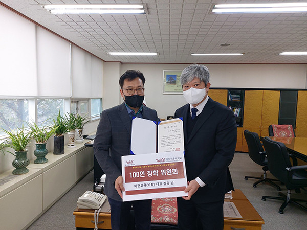 김욱 대표의 100인 장학위원회 장학금 기부는 2022년 새로 체결된 첫 번째 기부 약정이다.