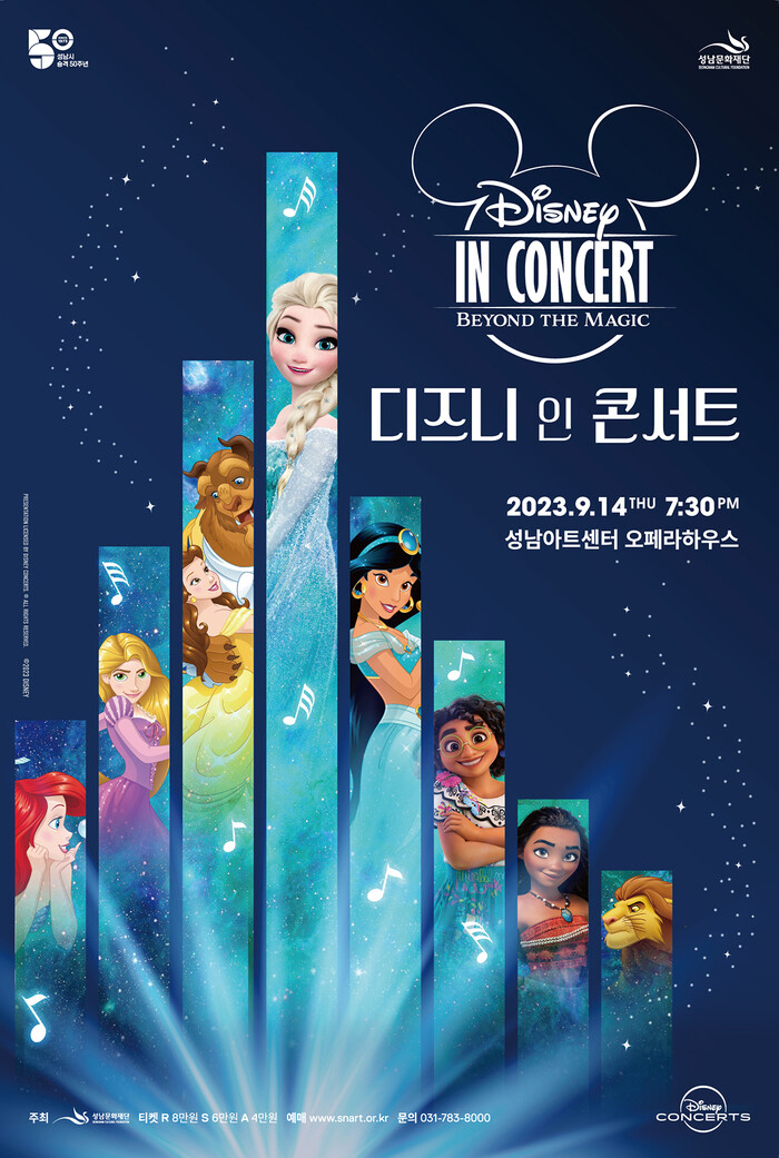 [성남=오왕석 기자] 성남문화재단(대표 서정림)이 세계인들의 사랑을 받은 디즈니 애니메이션 명작 속 음악들을 오케스트라 하모니로 즐길 수 있는 ‘2023 디즈니 인 콘서트 : Beyond the Magic’을 오는 9월 14일(목) 성남아트센터 오페라하우스에서 개최한다.