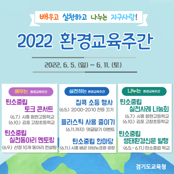 [수원=임종인 기자] 경기도교육청은 도내 모든 학교에서 '2022 환경교육주간'을 오는 11일까지 운영한다.