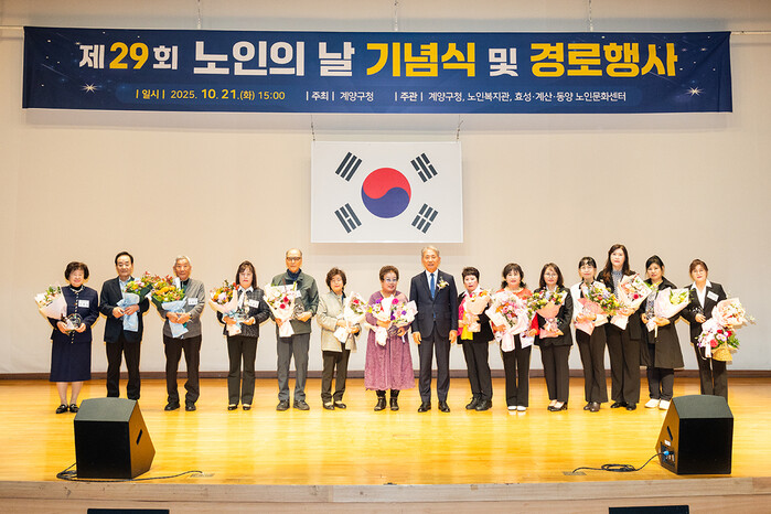 [인천=문찬식 기자] 인천 계양구(구청장 윤환)는 21일 구청 대강당에서 지역 어르신 400여 명이 참석한 가운데 ‘제29회 노인의 날 기념행사’를 성황리에 개최했다.