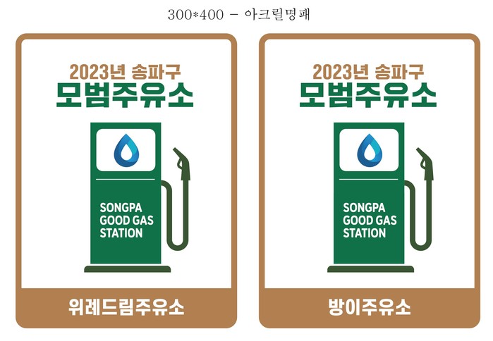 [시민일보 = 이대우 기자] 서울 송파구(구청장 서강석)가 지역내 위치한 위례드림주유소(장지동)와 방이주유소(방이동) 2곳을 ‘2023년 모범주유소’로 지정했다.