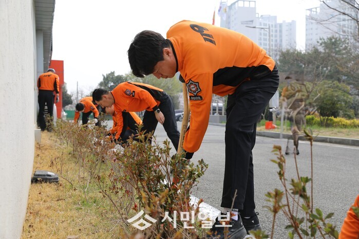이날 행사에는 소방공무원 60여 명이 참여해 청사 주변에 문그로우 25그루, 철쭉 60그루, 금사철나무 90그루를 식재했으며, 주변 환경 정화를 위한 쓰레기 수거 활동도 함께 진행했다.