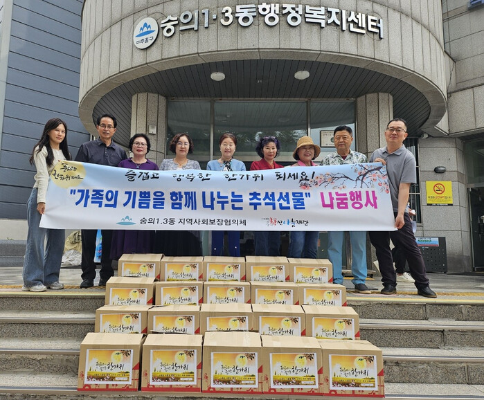 숭의1·3동 지역사회보장협의체(위원장 민명숙)는 ‘가족의 기쁨을 함께 나누는 추석 명절 선물 지원사업’의 일환으로, 관내 독거 어르신 등 취약계층을 대상으로 추석 명절 꾸러미 20개(100만 원 상당)를 전달하며 따뜻한 인사를 전했다.