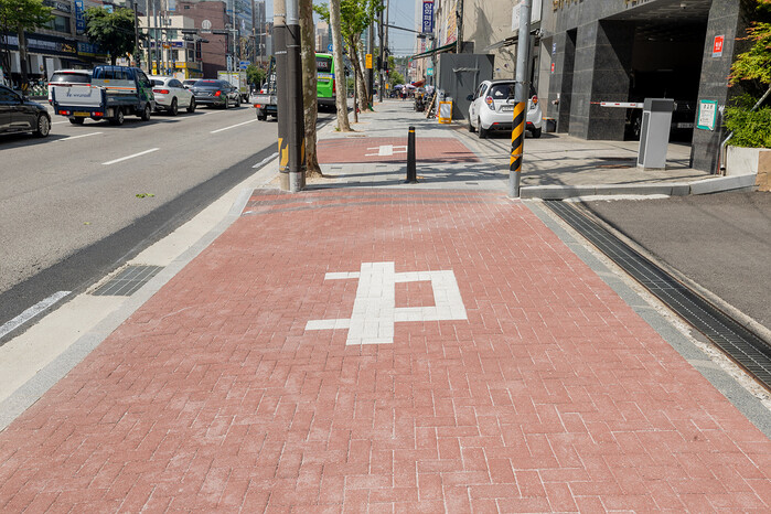 | ▲ 양천구가 차량 진출입로 보행 안전 강화 위해 도입한 차량진출입로 안심디자인. (사진=양천구청 제공) |