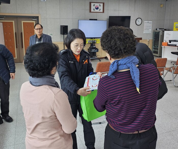 | ▲ 강진소방서, 디지털 소외계층 대상 찾아가는 소방안전교육 및 홍보물 배부 / 강진소방서 제공 |