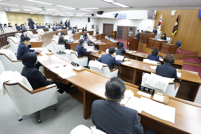 공기환 의장 직무대리는 개회사를 통해 “이번 정례회에서는 2026년도 예산안 심사와 내년도 구정 운영 계획이 주요 안건으로 다뤄진다”며 “구민의 안전·복지·교육·도시환경·문화·경제 정책이 목적에 맞게 집행될 수 있도록 면밀히 심사하고, 집행부에서는 의회의 의견을 열린 마음으로 검토·반영해 내년 구정 운영이 구민 기대에 부응할 수 있도록 준비해 달라”고 당부했다.