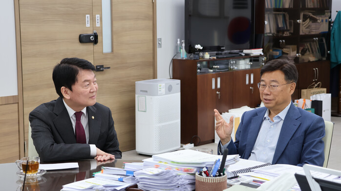 [성남=오왕석 기자] 국민의힘 안철수 국회의원(성남 분당갑)은 12일(화) 신상진 성남시장을 만나 ‘야탑밸리 테스트베드센터’ 조속 추진과 이매동 자연마을의 도로·보행로 정비 등 지역 현안 해결 방안을 논의했다. 이날 면담은 당초 예정된 30분을 훌쩍 넘겨 75분간 진행되었으며, 김보석 시의원과 김건우 비서관도 배석해 주요 현안에 대한 실질적인 협력 방안을 모색했다.
