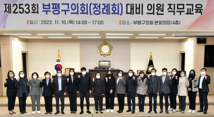 [인천=문찬식 기자] 인천 부평구의회가 본회의장에서 ‘제253회 부평구의회(정례회) 대비 의원 직무교육’을 실시했다.