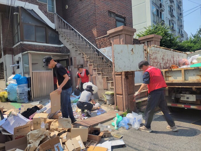 특히, 대상 가구는 새벽까지 폐지를 줍는 등 저장강박 성향이 매우 높아 올해 3월부터 진행된 청소 활동마다 9톤 분량의 폐기물이 발생했으며, 일반 쓰레기와 음식물이 뒤섞여 나는 불쾌한 냄새 및 폐지 분리 시 발생하는 소음 등으로 인근 주민의 민원도 적지 않아 지역사회 돌봄에 한계에 이른 가구였다.