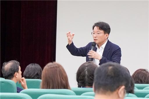 사공정규 교수는 '2024년 경영동문회 명사초청특강'을 '즉문즉답 힐링토크 콘서트'라는 형식으로 기존의 일방적인 주입식 강연 형식에서 탈피해 청중들의 좌석 속에서 청중과 쌍방향으로 자유롭게 질문하고 대화하는 즉문즉답 형식으로 75분간 진행했다.