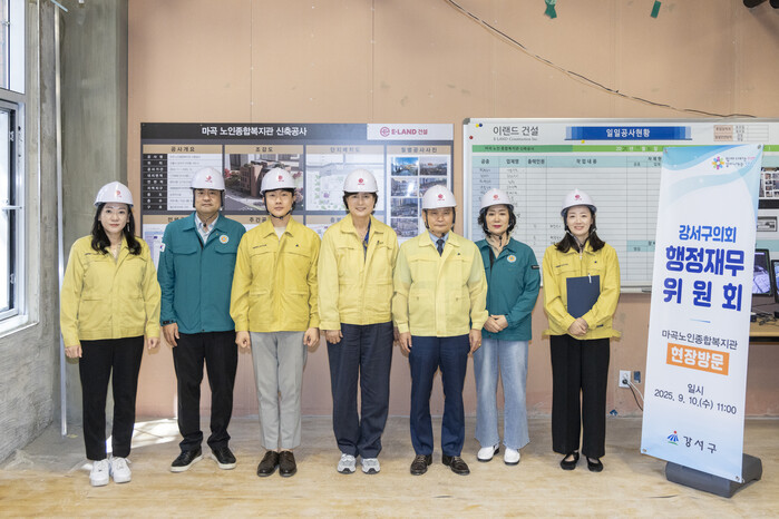 [시민일보 = 박소진 기자] 서울 강서구의회 행정재무위원회가 최근 제313회 임시회 기간 중 ‘마곡노인종합복지관’ 공사 현장을 방문해 주요 시설물을 점검했다.