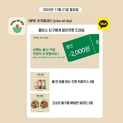 포케올데이는 신메뉴 출시를 기념하기 위해 카카오톡 플러스 친구로 등록한 소비자에게 2천원 할인 쿠폰을 증정할 예정이다. 이번 할인쿠폰은 전국 포케올데이 지점에서 12월 31일까지 이용할 수 있다.