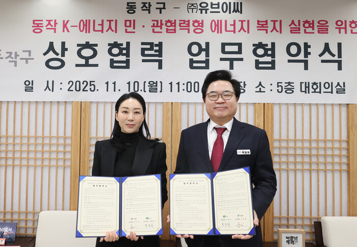 구는 지난 10일 ㈜유브이씨와 ‘동작 K-에너지, 민·관 협력형 에너지 복지 실현을 위한 업무협약’을 체결하고 이같이 밝혔다.