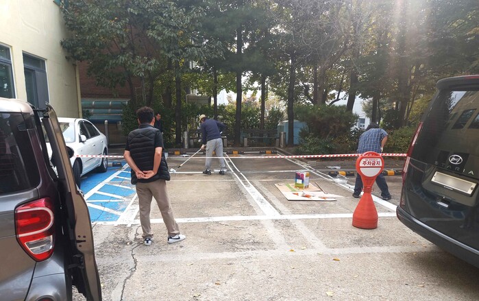 공단 주차사업팀 부서 특성을 살려 ‘주차라인 도색 및 시설 보수’ 재능 기부 활동을 펼친 것이다.