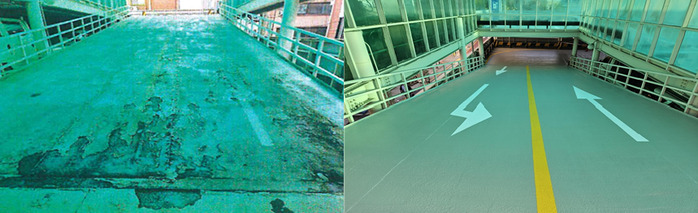 | ▲ (왼쪽)성수1가1동 공영주차장 바닥 보수 전, (오른쪽) 성수1가1동 공영주차장 바닥 보수 후. (사진=성동구청 제공) |