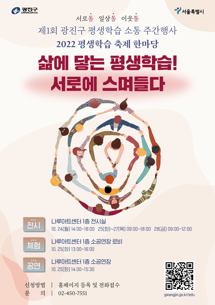 [시민일보 = 여영준 기자] 서울 광진구(구청장 김경호)가 2022년 평생학습도시 선정을 기념하고 올 한해 평생학습 성과를 공유하기 위해 오는 24~28일 '2022 평생학습 축제 한마당'을 개최한다.