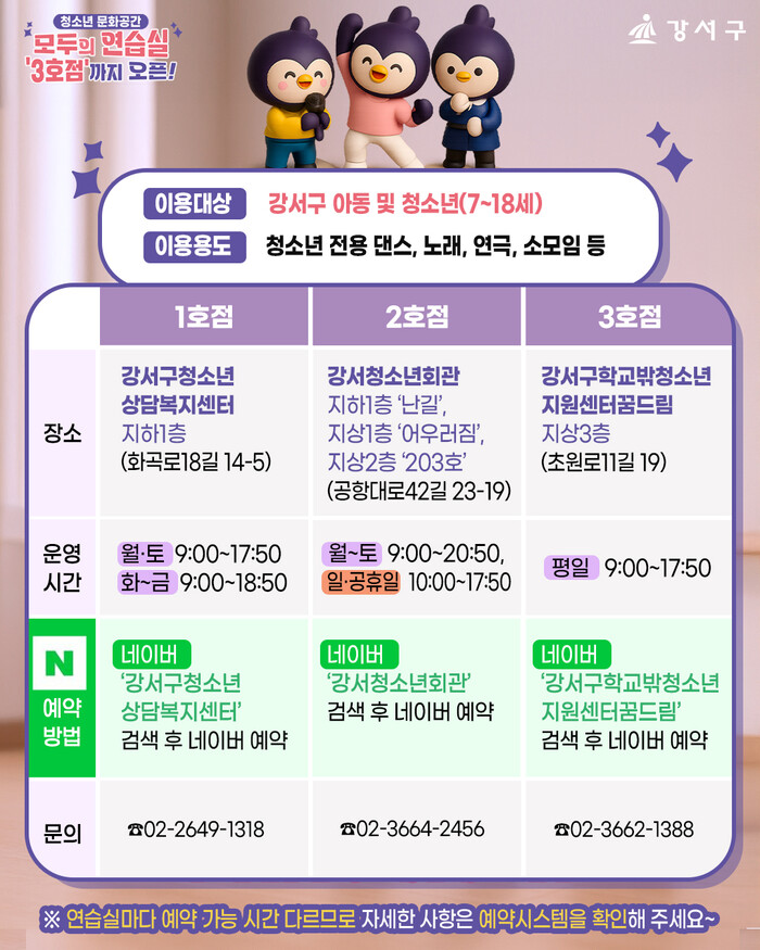 앞서 지난해 9월에는 1호점(화곡로18길 14-5)과 2호점(공항대로42길 23-19)을 동시에 개관해 현재까지 약 1400여명이 연습실을 이용했으며, 4호점(염창동 272-1) 개소도 준비 중에 있다.