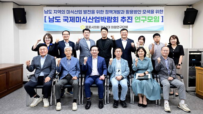 [목포=황승순 기자]목포시의회 의원연구단체 ‘남도국제미식산업박람회 추진 연구모임’은 8일, 목포시의회 시민의 방에서 박람회 사무국으로부터 준비 현황을 보고받고 성공적인 개최 방안을 논의하는 자리를 가졌다.