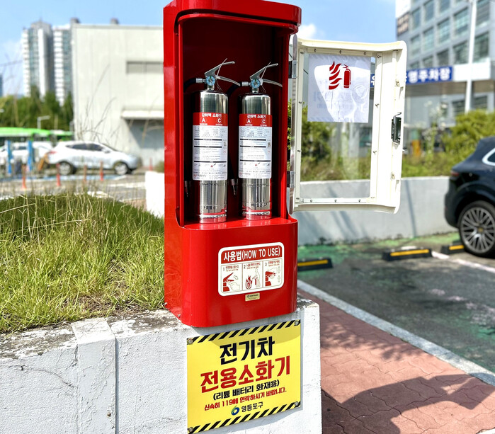 [시민일보 = 여영준 기자] 서울 영등포구(구청장 최호권)는 전기차 화재 발생 시 신속한 대응과 구민 안전 확보를 위해 지역내 공영주차장에 전기차 전용 소화기, 열화상카메라 등 화재예방 설비를 추가 설치했다고 23일 밝혔다.