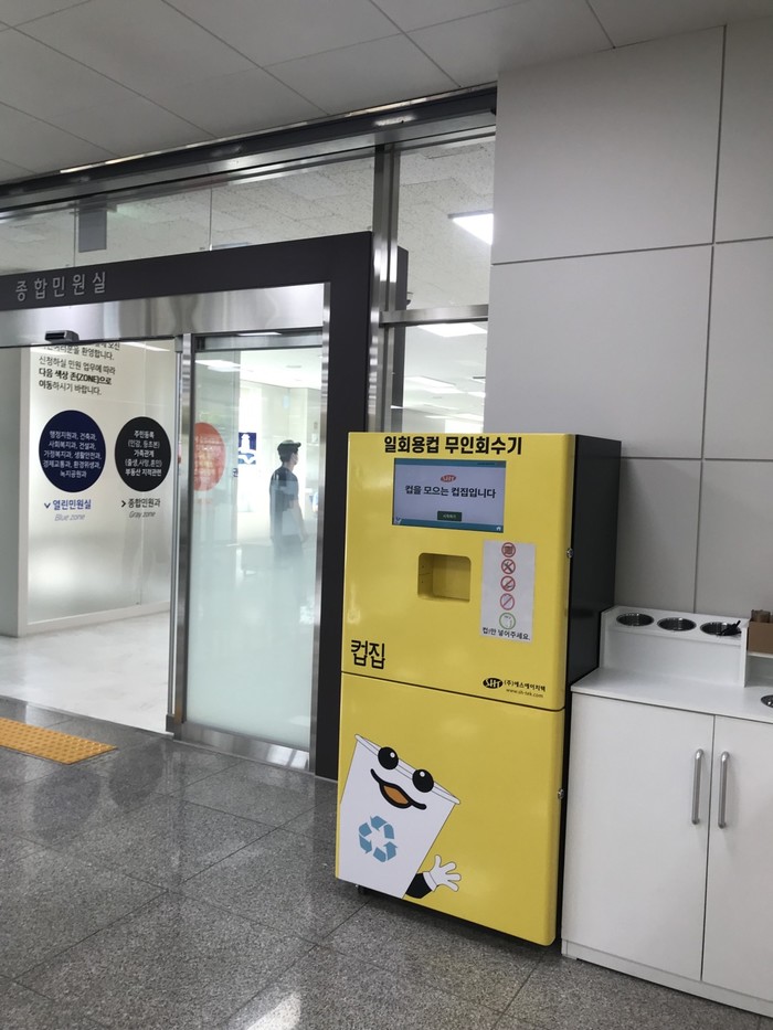 [수원=임종인 기자] 경기 수원시는 권선구청 로비와 수원벤쳐벨리II A동 1층 로비에 일회용컵 무인회수기를 설치해 오는 11월까지 시범 운영한다고 26일 밝혔다.