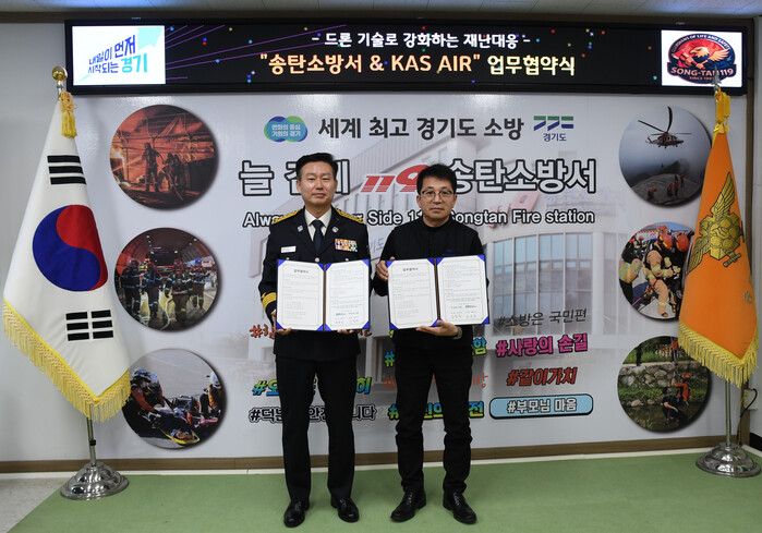 이번 협약은 급변하는 재난 환경에 효과적으로 대응하기 위해 드론 등 신기술을 재난 현장 대응에 적극 활용하고, 소방공무원의 전문성을 체계적으로 강화하기 위한 목적으로 홍의선 송탄소방서장과 KAS AIR 김석주 대표가 참석한 가운데 진행됐다.