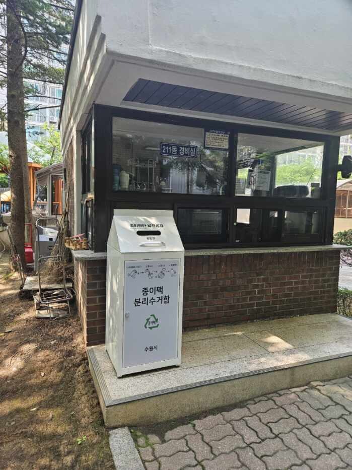 [수원=임종인 기자] 경기 수원시가 1000가구 이상 대규모 공동주택 6곳에 종이팩 수거함을 설치했다.