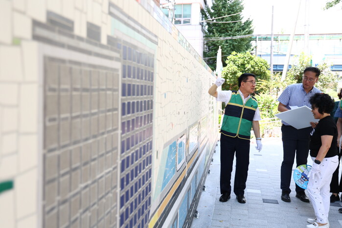 또 1번 출구 앞의 빗물펌프장 수문 치수시설물을 점검하고, 보행자의 불편을 초래하는 자전거 거치대와 방치된 자전거 상황을 확인했다.