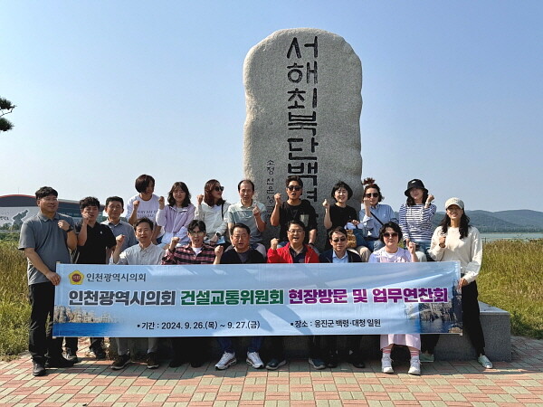 [인천=김형만 기자] 인천시의회 건설교통위원회는 9월 26일부터 27일까지 이틀간 우리나라 서해 최서북단 백령도와 대청도를 찾아 사업 현장을 점검하고 차질 없는 사업추진 방안을 논의했다고 29일 밝혔다.