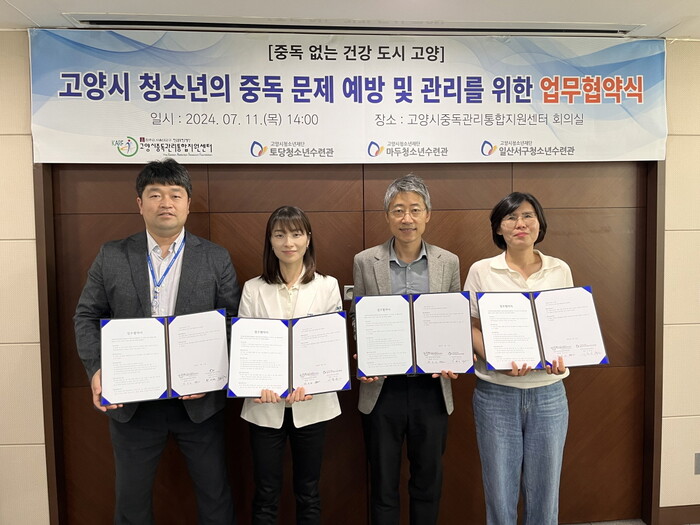 [시민일보 = 민장홍 기자] 경기 고양시중독관리통합지원센터는 최근 고양시 청소년들의 중독문제 예방 및 지역사회 안전망 구축을 위해 지역내 청소년수련관 세 곳과 업무협약을 체결했다.