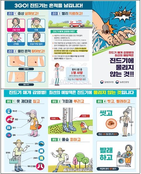 홍상의 시 감염병관리과장은 “진드기 매개 감염병은 예방 백신과 검증된 치료제가 없어 조기진단과 적기치료가 중요하다”며 “예방수칙을 준수하고 증상 발현 시 즉시 의료기관에 방문해 주시기 바란다.”고 말했다.