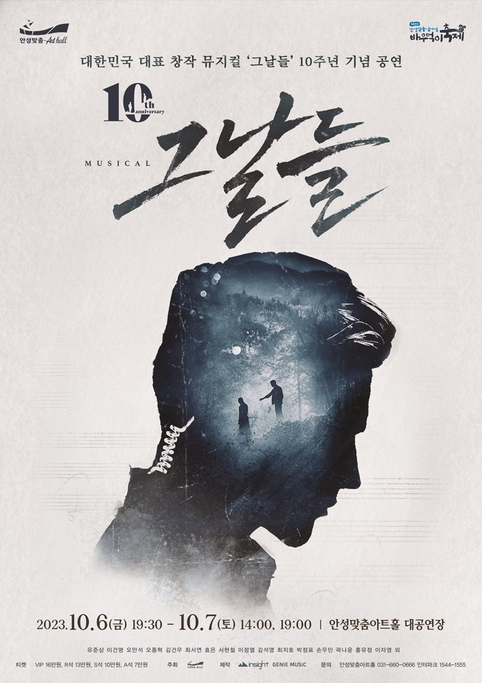 올해로 10주년을 맞은 뮤지컬 <그날들>이 축제 기간에 맞춰 안성을 찾는다. 유준상, 오만석, 오종혁 등 화려한 캐스팅으로 꾸려진 이번 무대는 10월 6일(금), 10월 7일(토) 양일에 걸쳐 안성맞춤아트홀 대공연장에서 진행되며 2023 바우덕이 축제를 찾은 관람객이라면 누구나 25% 할인을 받을 수 있다.