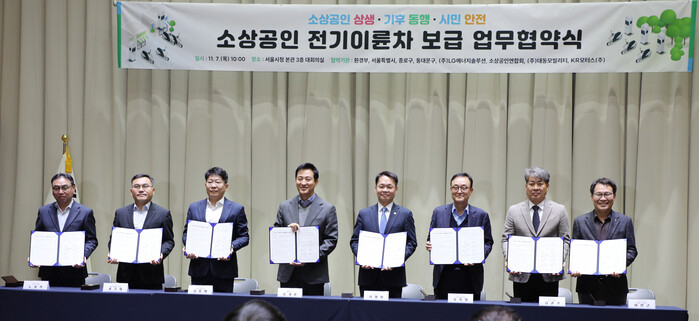 그 첫걸음으로 지난 7일 서울시청 대회의실에서 ‘소상공인 전기이륜차 보급 지원 및 안전한 이용 환경 조성을 위한 업무협약식’을 가졌다.