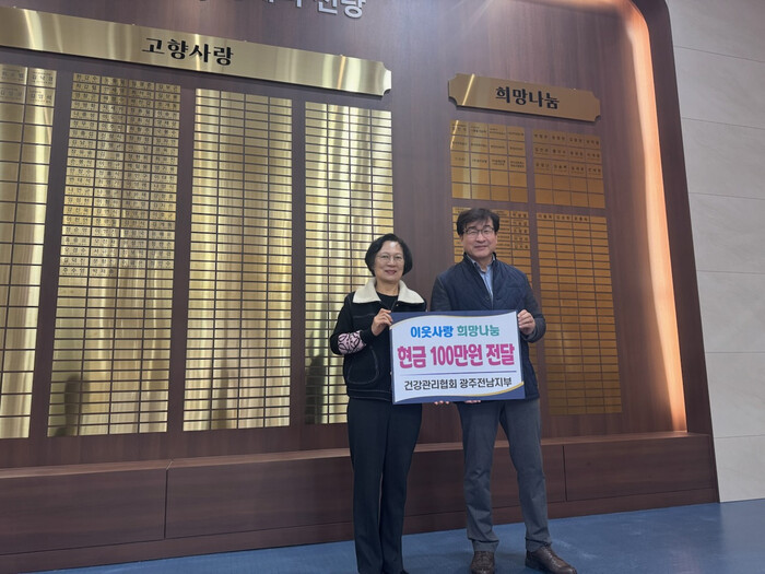 김윤희 복지환경국장은 "건강관리협회의 지속적인 기부에 깊이 감사드린다"며 "기탁된 성금은 전남사회복지공동모금회를 통해 도움이 필요한 이웃들에게 소중히 전달하겠다"고 밝혔다.