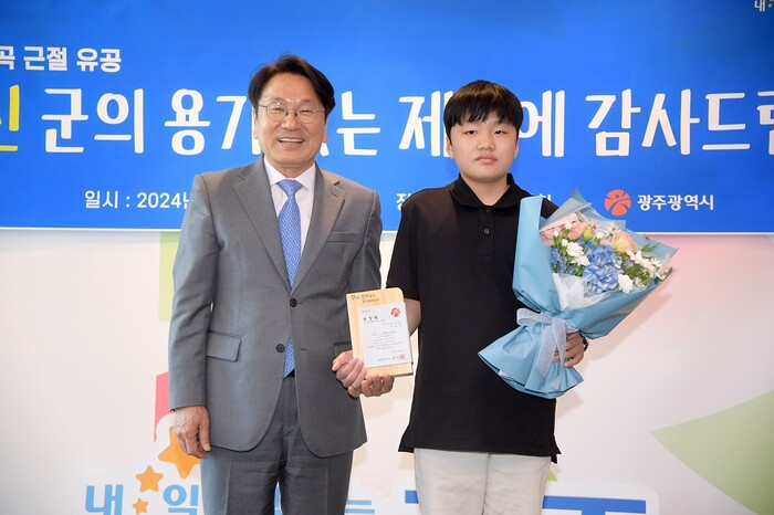 [광주=정찬남 기자] 강기정 광주광역시장은 5·18민주화운동 왜곡을 막은 이호진(12) 군의 용기있는 행동을 격려하고, 감사의 마음을 전했다.