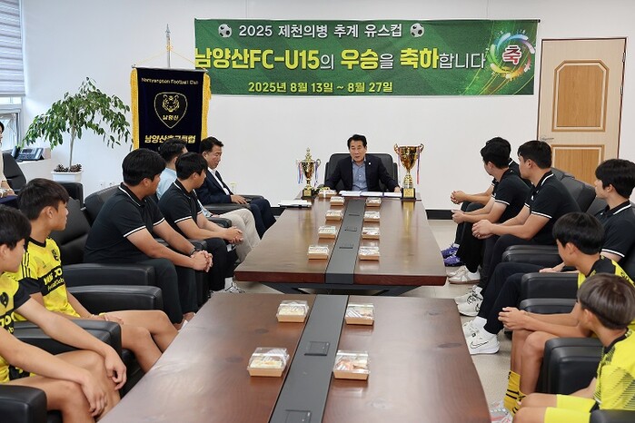 이날 격려 행사에는 남양산FC 백우현 대표, 김윤서 감독을 비롯해 선수들과 학부모 등 20여 명이 참석했다. 나동연 양산시장은 선수들에게 격려와 축하의 말을 전하며 “전국 67개 팀이 참가한 큰 대회에서 전 경기 무실점 우승이라는 놀라운 기록을 세워 양산의 위상을 높여준 선수들이 매우 자랑스럽다”고 말했다.