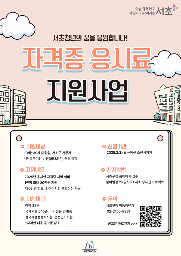| ▲ ‘청년 자격증 응시료 지원사업’ 홍보 포스터. (사진=서초구청 제공) |