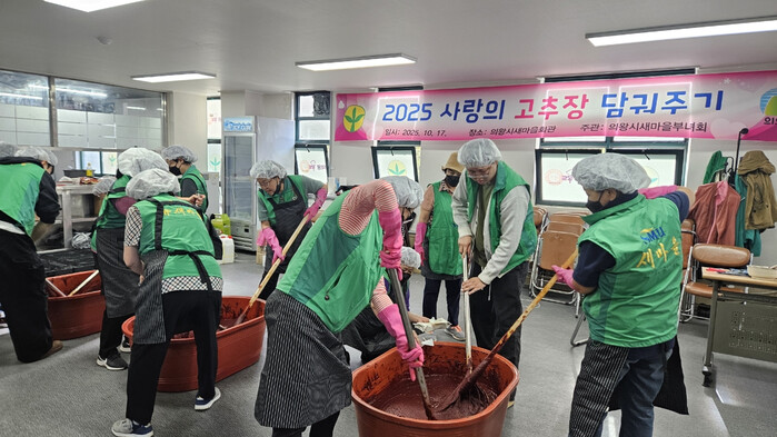 | ▲ 의왕시는 지난 10월 17일 의왕시새마을부녀회와 함께 새마을회관에서‘2025 사랑의 고추장 담궈주기’행사를 진행하고 있다 /사진제공=의왕시 |