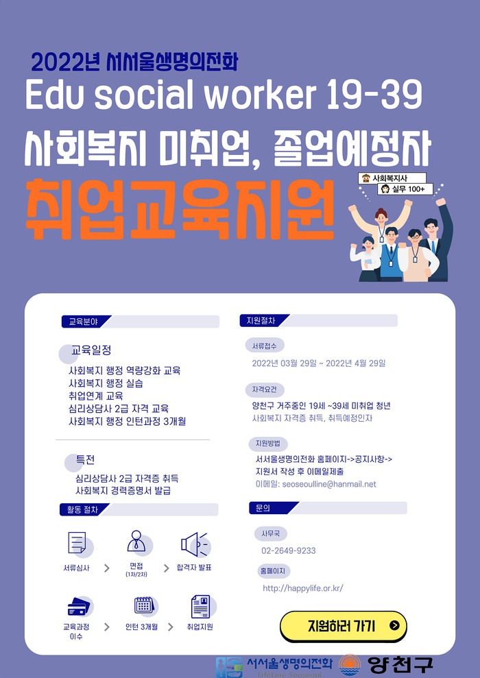 | ▲ 청년 취업연계 프로그램(사회복지 부문) 참여자 모집 홍보 포스터.(사진제공=양천구청) |