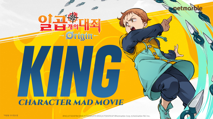 넷마블에 따르면 이번 캐릭터 매드무비는 요정왕 ‘킹’을 시작으로 거인족 ‘다이앤’, 오리진의 주인공 ‘트리스탄’, 단장 ‘멜리오다스’ 순으로 공개된다.