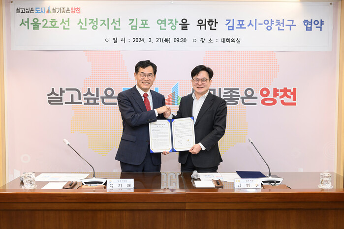 [시민일보 = 이대우 기자] 서울 양천구(구청장 이기재)가 경기 김포시와 ‘서울2호선 신정지선 김포 연장(까치산역~김포) 및 신정차량기지 이전’ 관련 사전타당성조사 공동 용역 계약을 체결하고, 대도시권 광역교통시행계획 반영을 위한 구상에 본격 착수했다.